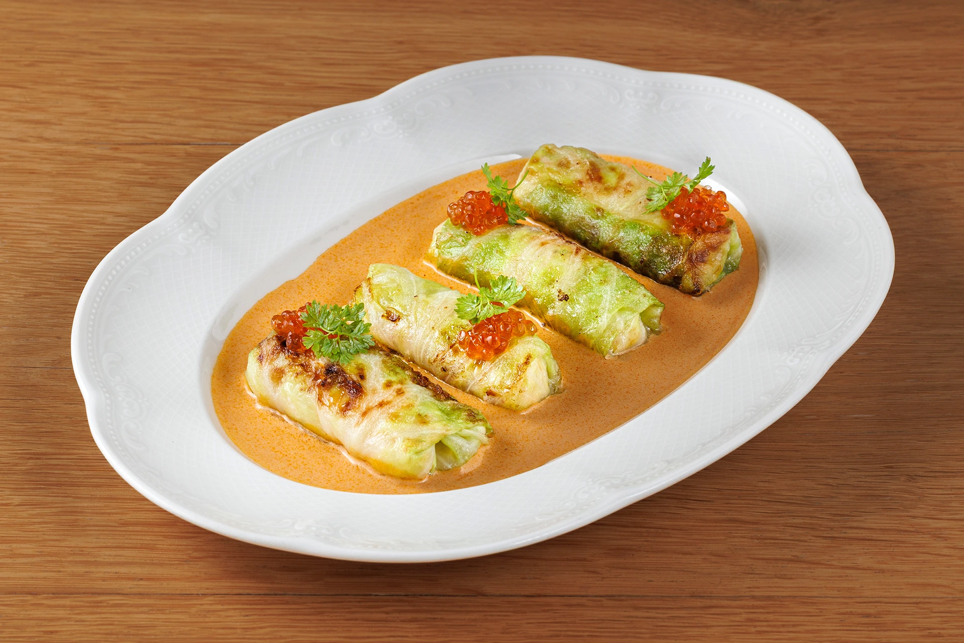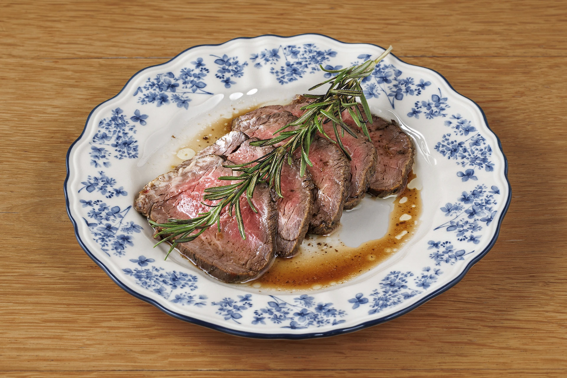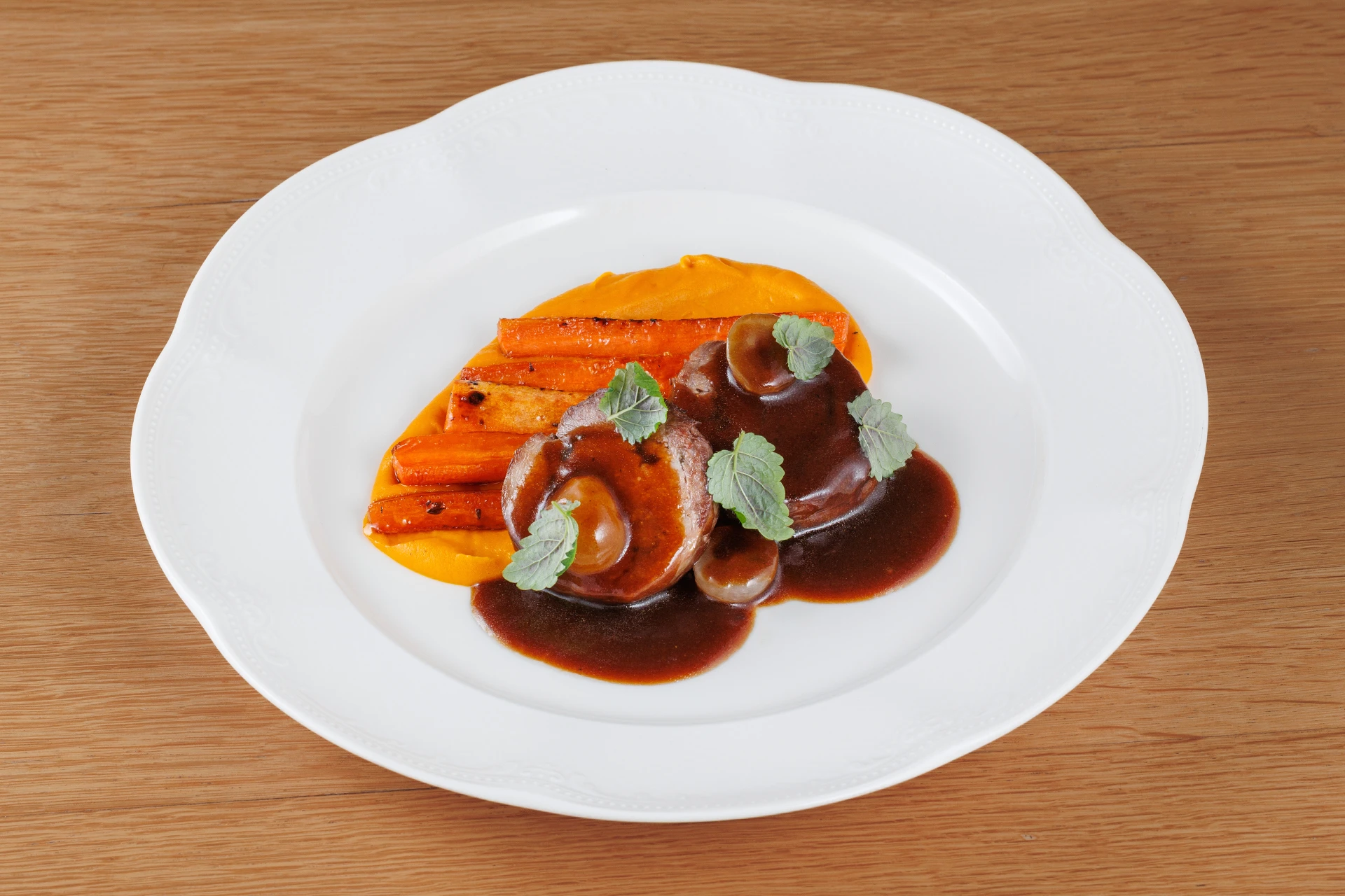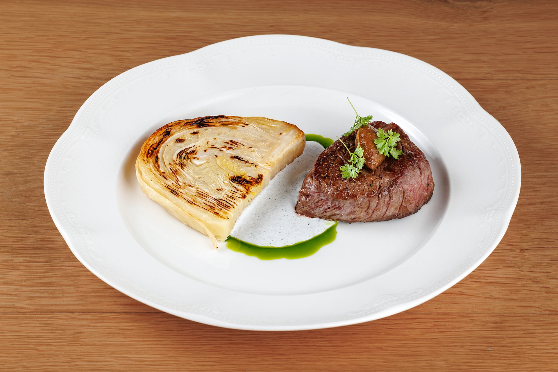 Стейк миньон с запеченной капустой и соусом из жженой виноградной лозы