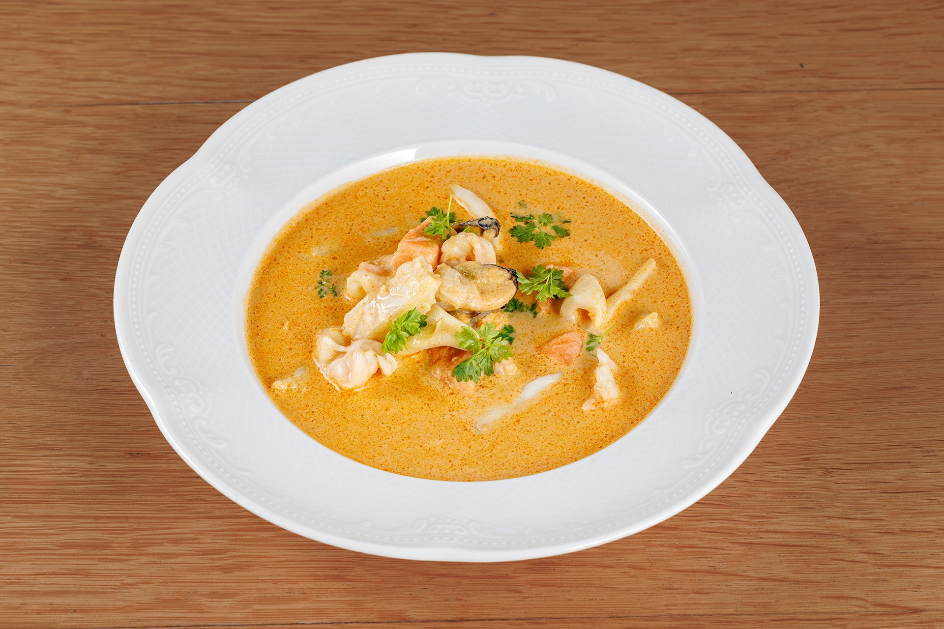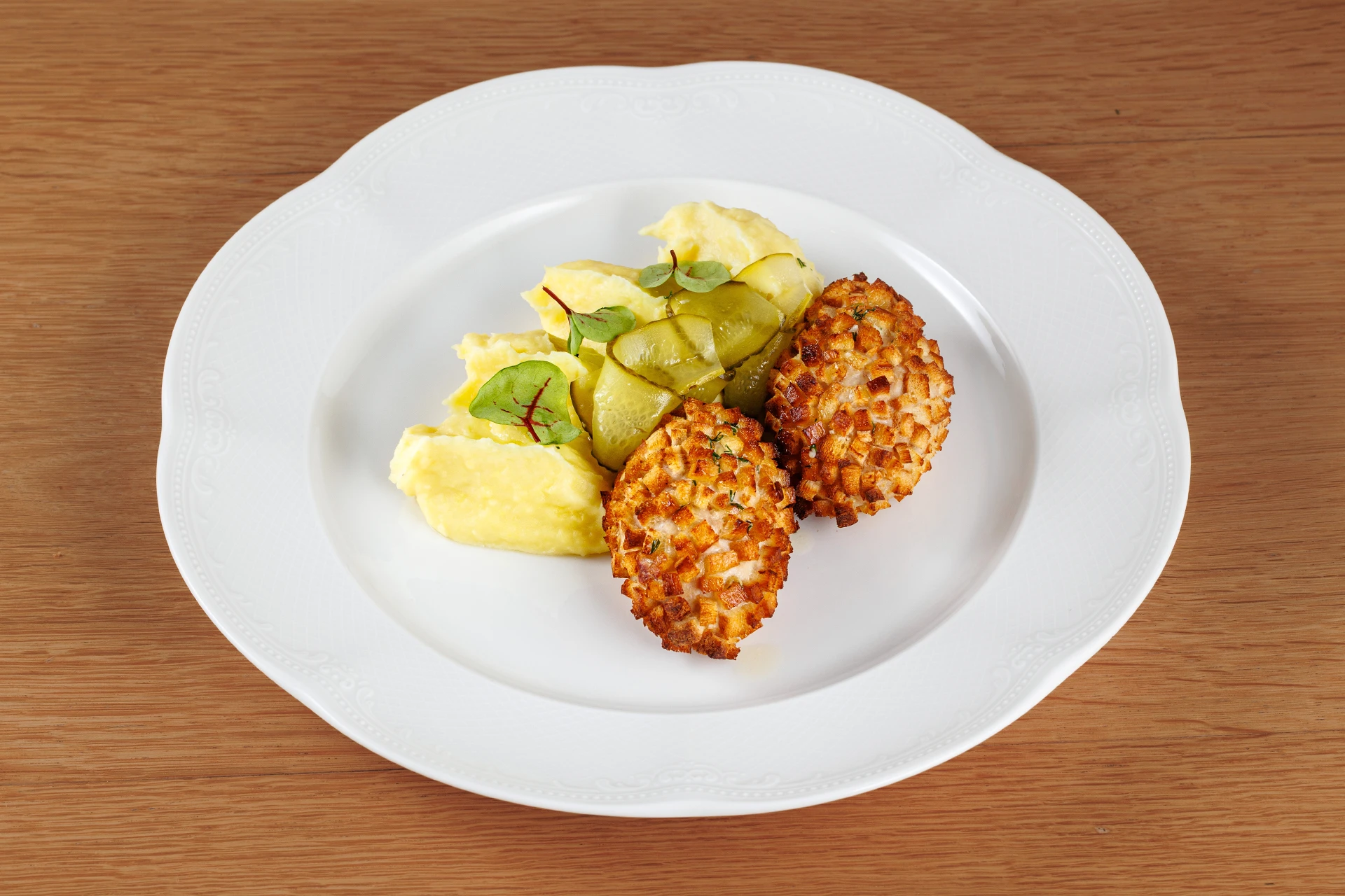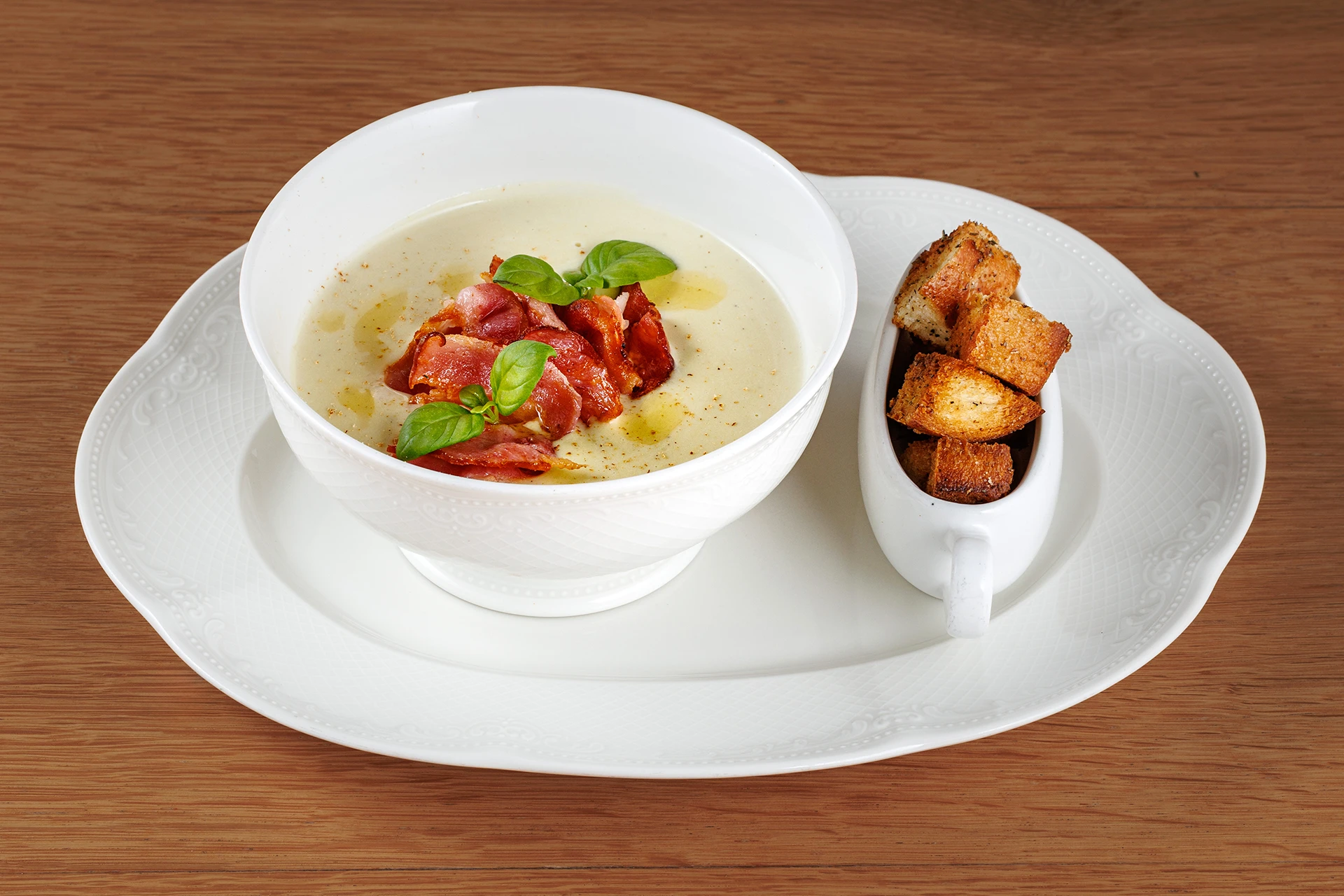 Картофельный крем-суп с беконом и маслом бер-нуазет