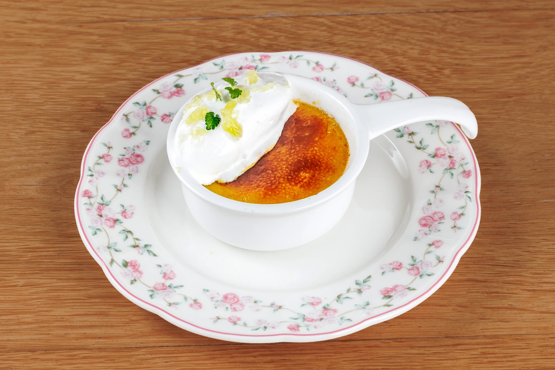 Лимонное крем брюле с йогуртово-кокосовым мороженым и свежим лаймом