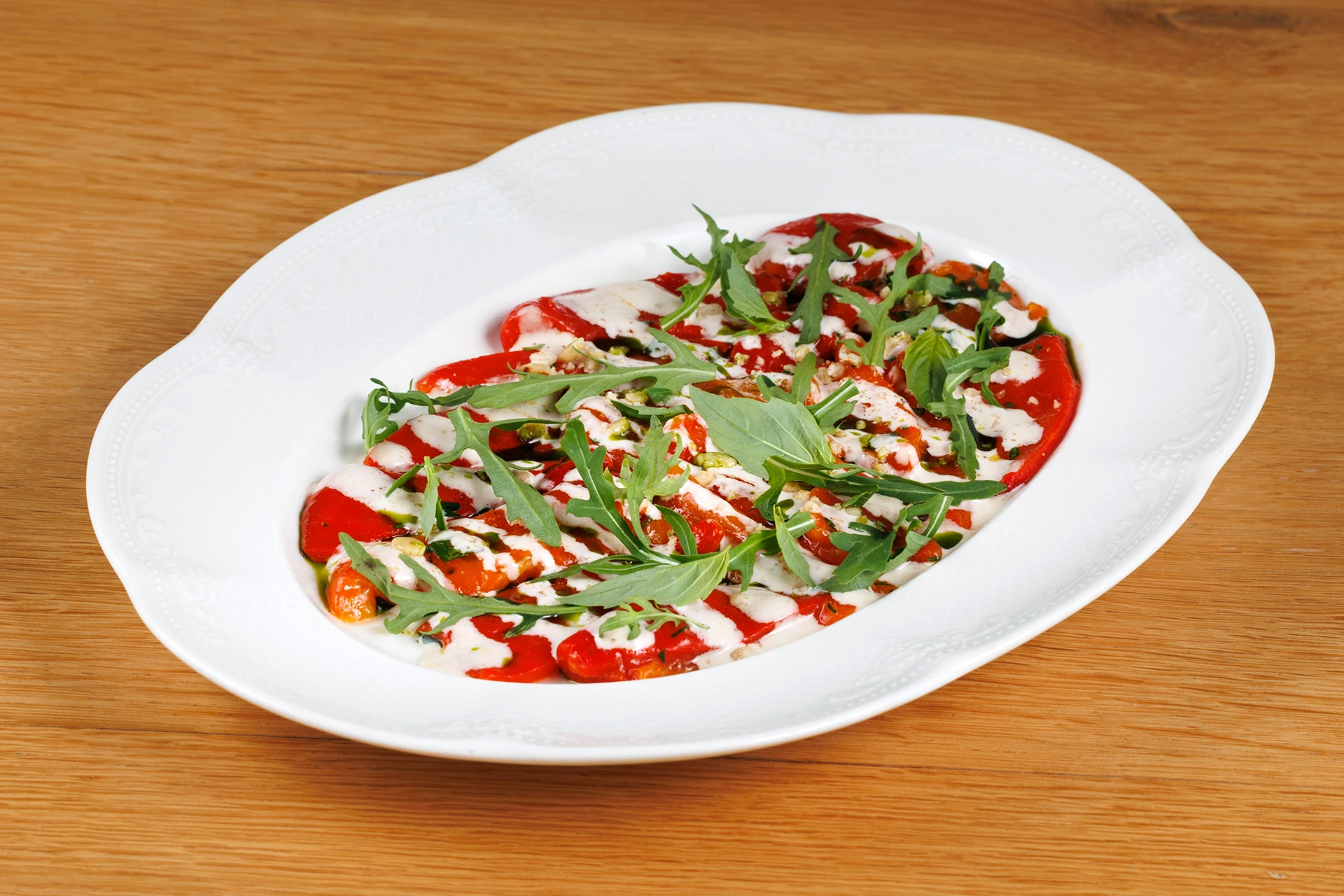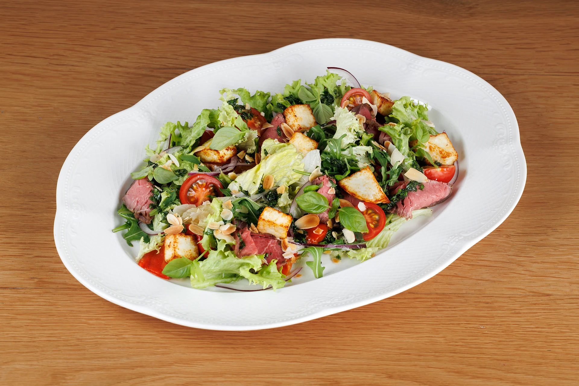 Салат с печеным перцем, ростбифом и адыгейским сыром